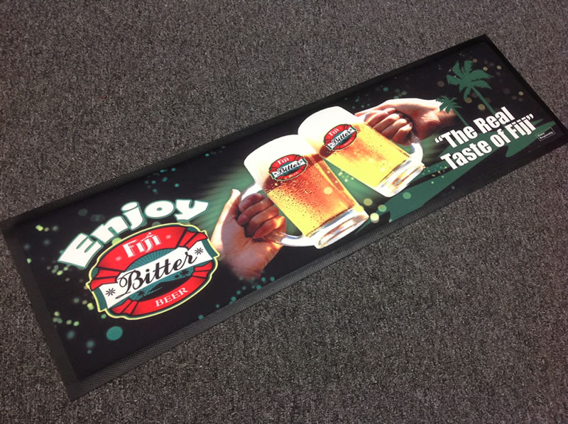 Mats R us Bar mats are manufactured and printed in our factory in Melbourne using the highest of print technologies allowing for sharp vibrant colour, logo and photo replication.